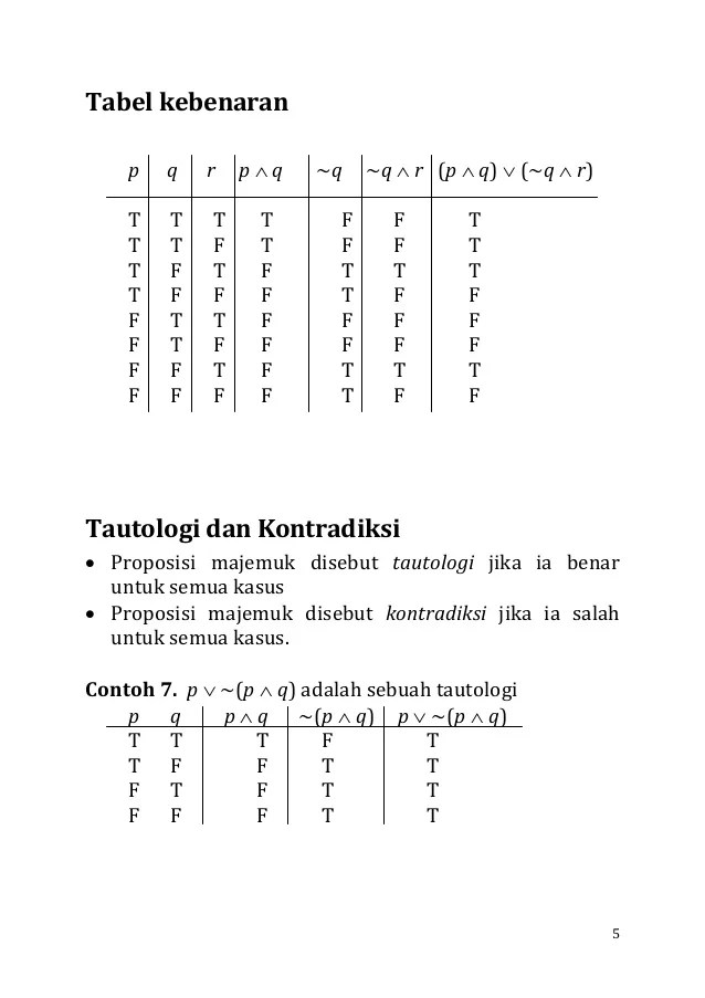 Mahasiswa memahami tabel kebenaran untuk semua. Bedu menangkap bola dan menendangnya; Proposisi majemuk yang selalu bernilai benar. Pada logika matematika, tabel kebenaran adalah tabel didalam matematika. Logika informatika logika dan pernyataan 1.